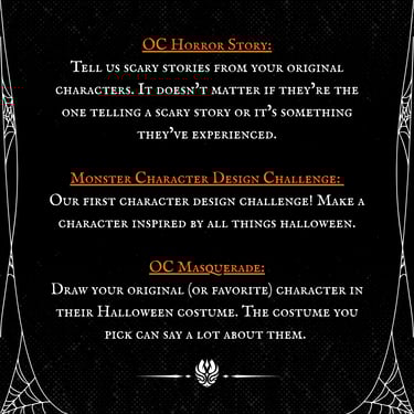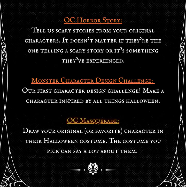 OC Horror Story: in #all-about-ocs we’d love to hear stories from your original characters. It doesn't matter if they’re the one telling a scary story or it’s something they’ve experienced, we’d love to hear it! Be sure to add [OC horror story] at the title of your forum post!